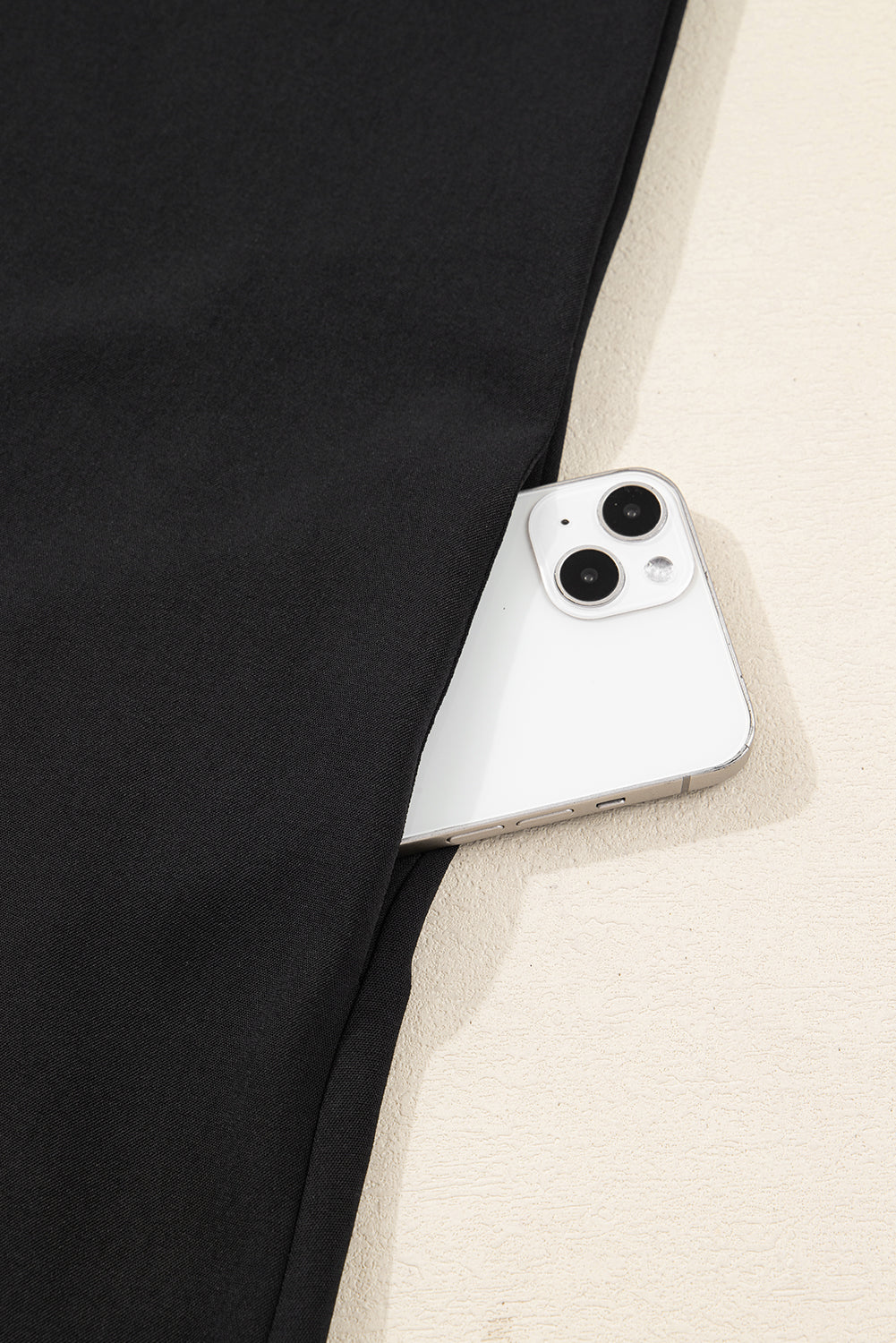 Plus size black dress designed in a shift fit style while the notched neck adds sexiness.