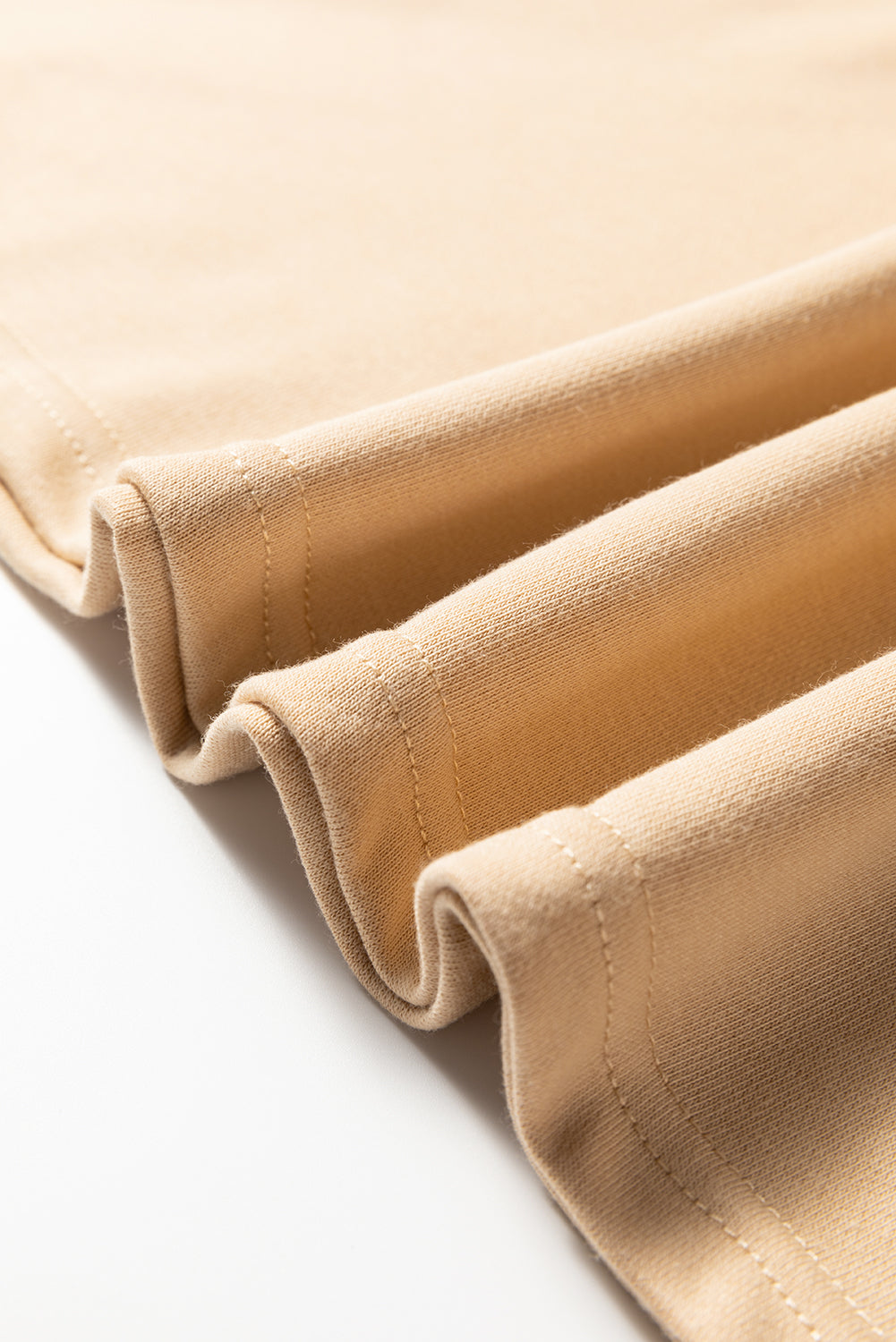 It has a round neck, raw seam details, and oversize fit.