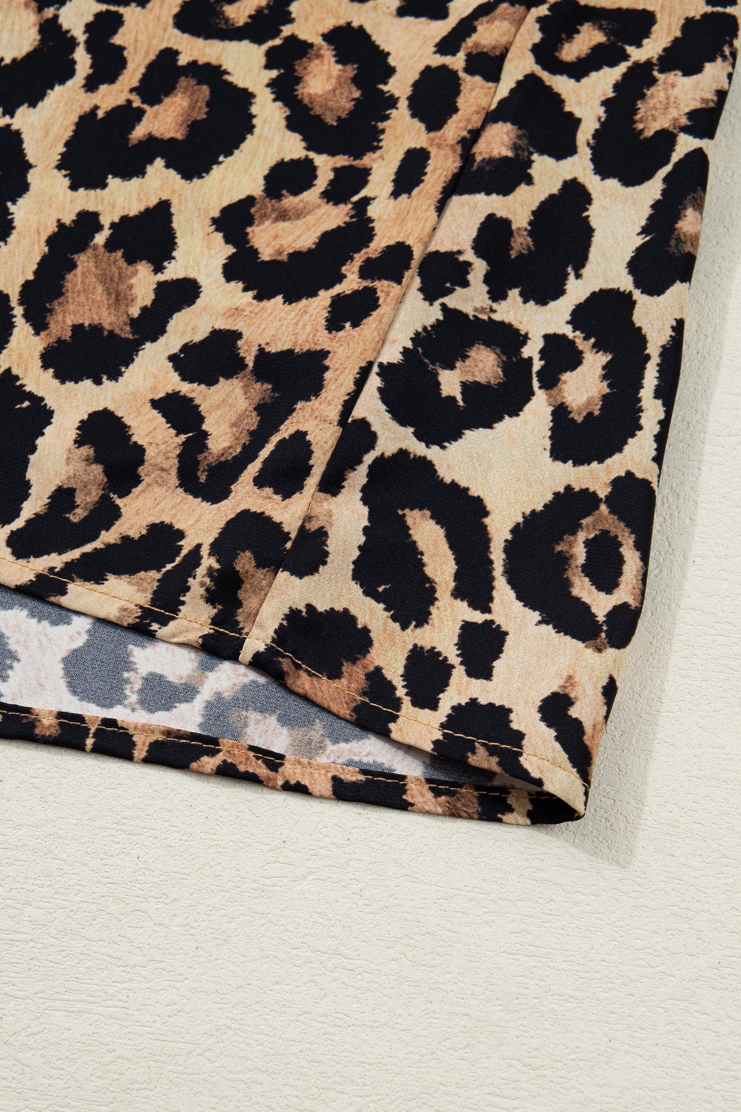 Brown Wild Leopard Print Contrast Striped Frilled Trim Chic Shirt