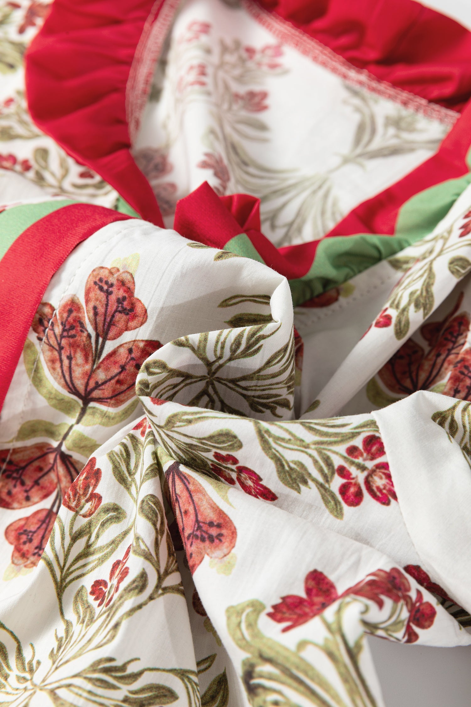 Floral Print Frilled Color Block Trim V Neck Long Sleeve Peplum Top
