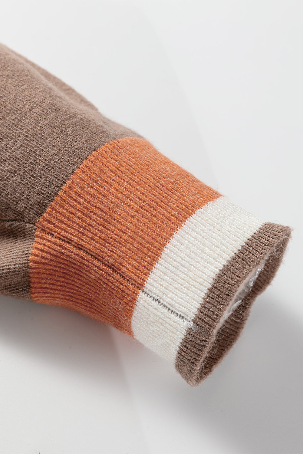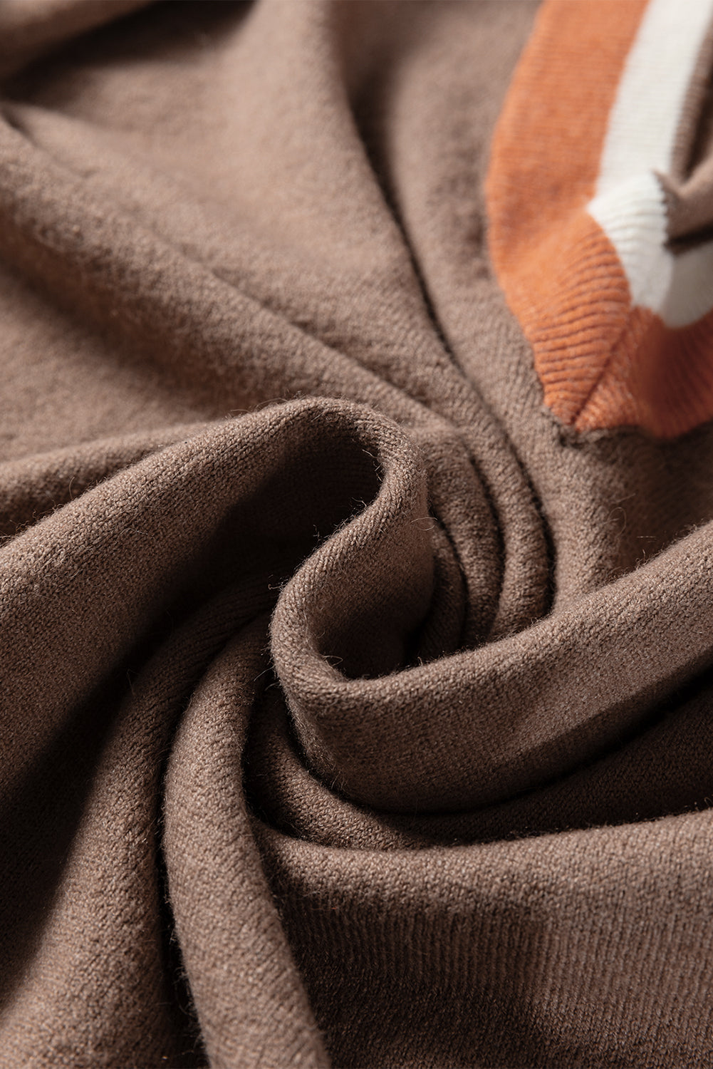 Gray Contrast Striped Trim V Neck Varsity Sweater