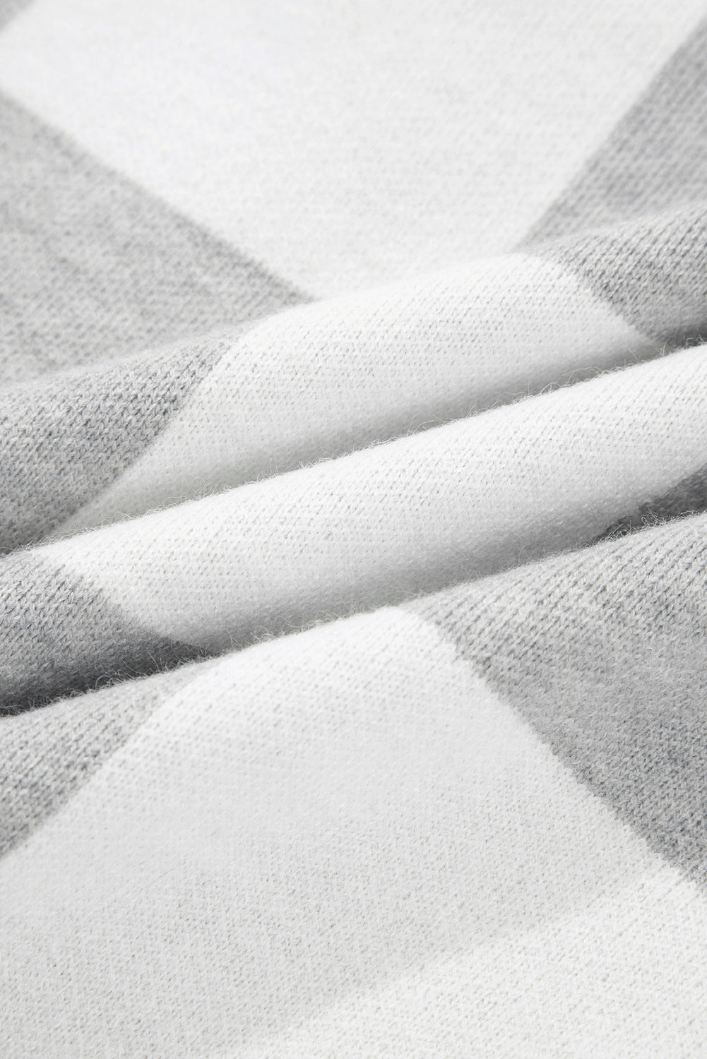 Gray Plus Size Checkered Pattern Button Polo Collar Split Sweater