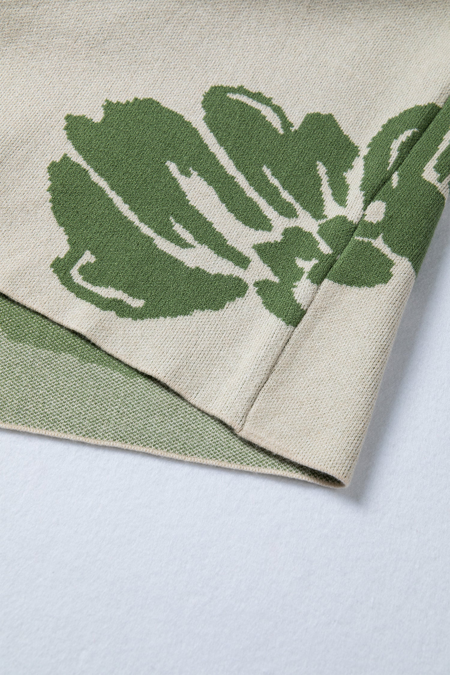 Green Bold Flower Pattern Wide Sleeve Baggy Sweater