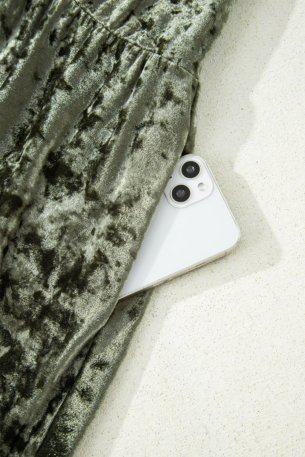 Jungle Green Plus Size Velvet Babydoll Mini Dress with Puff Sleeve