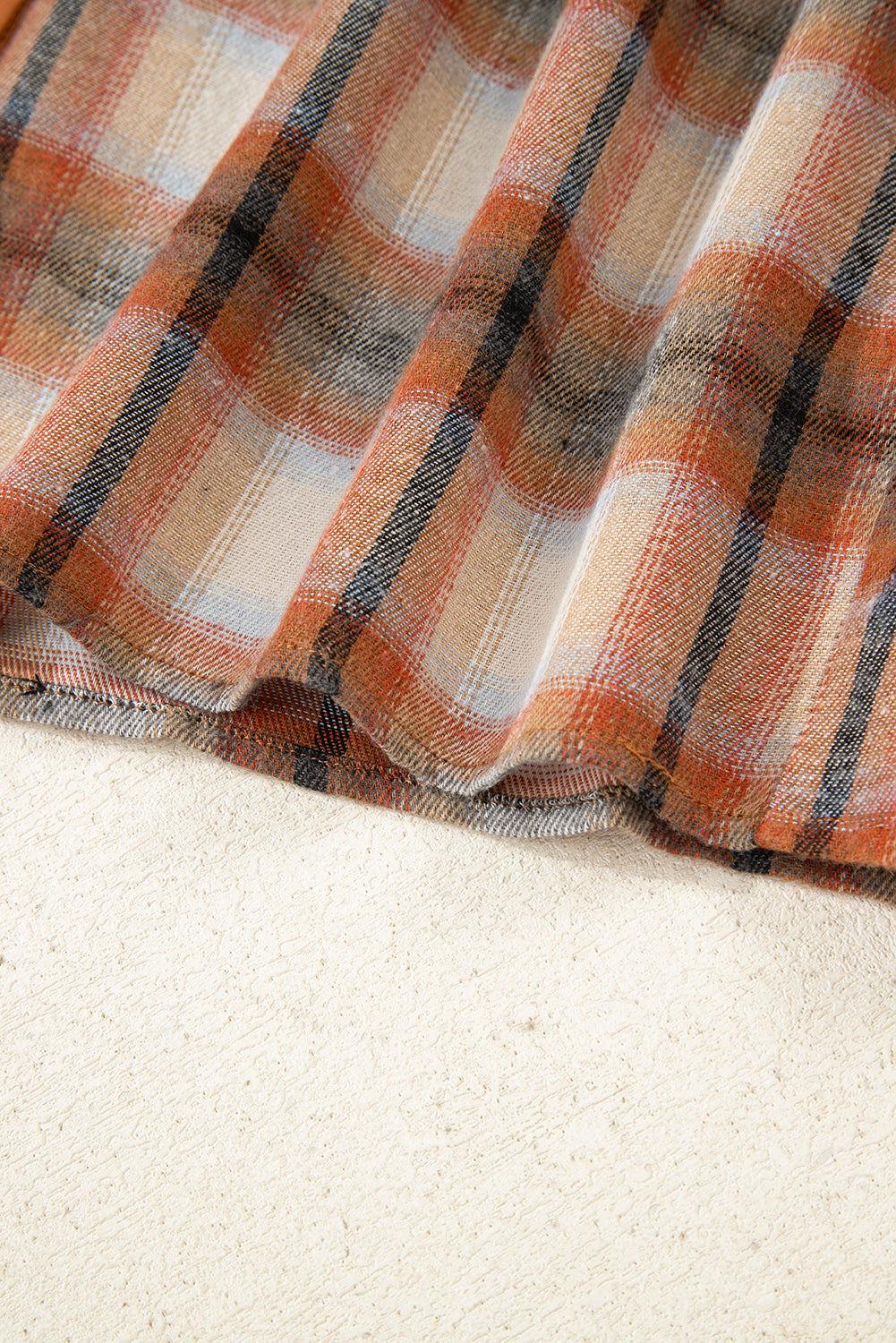 Khaki Plaid Color Block Patchwork Ruffle Hem Tunic Shirt Dress