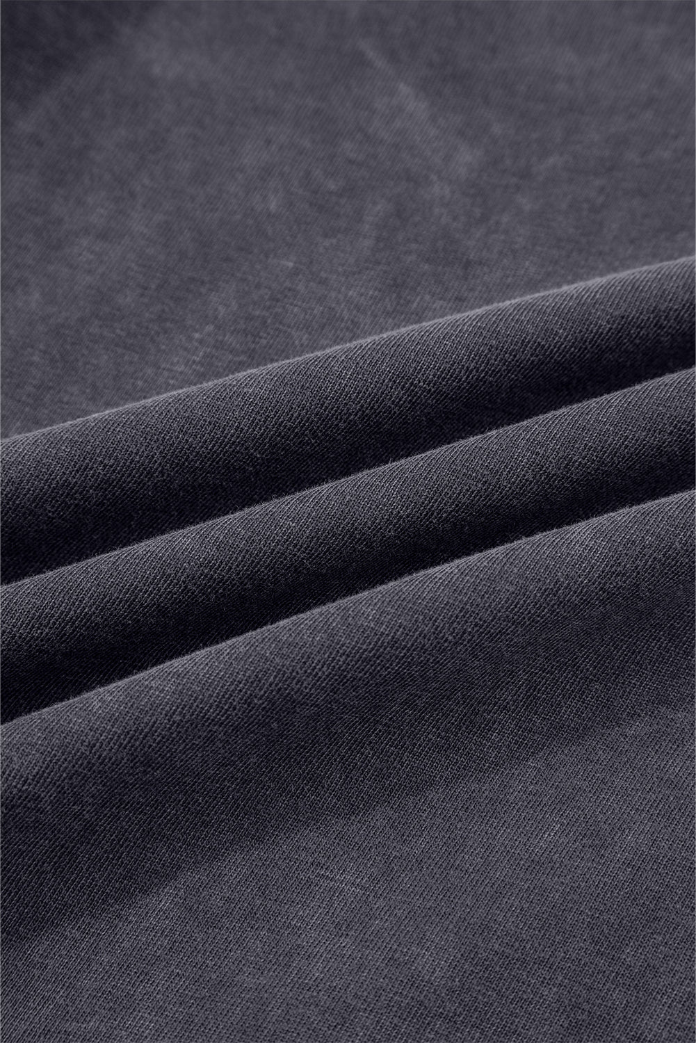 Light Grey Flower Patch Mineral Washed Terry Knit Cropped Wide Leg Pants