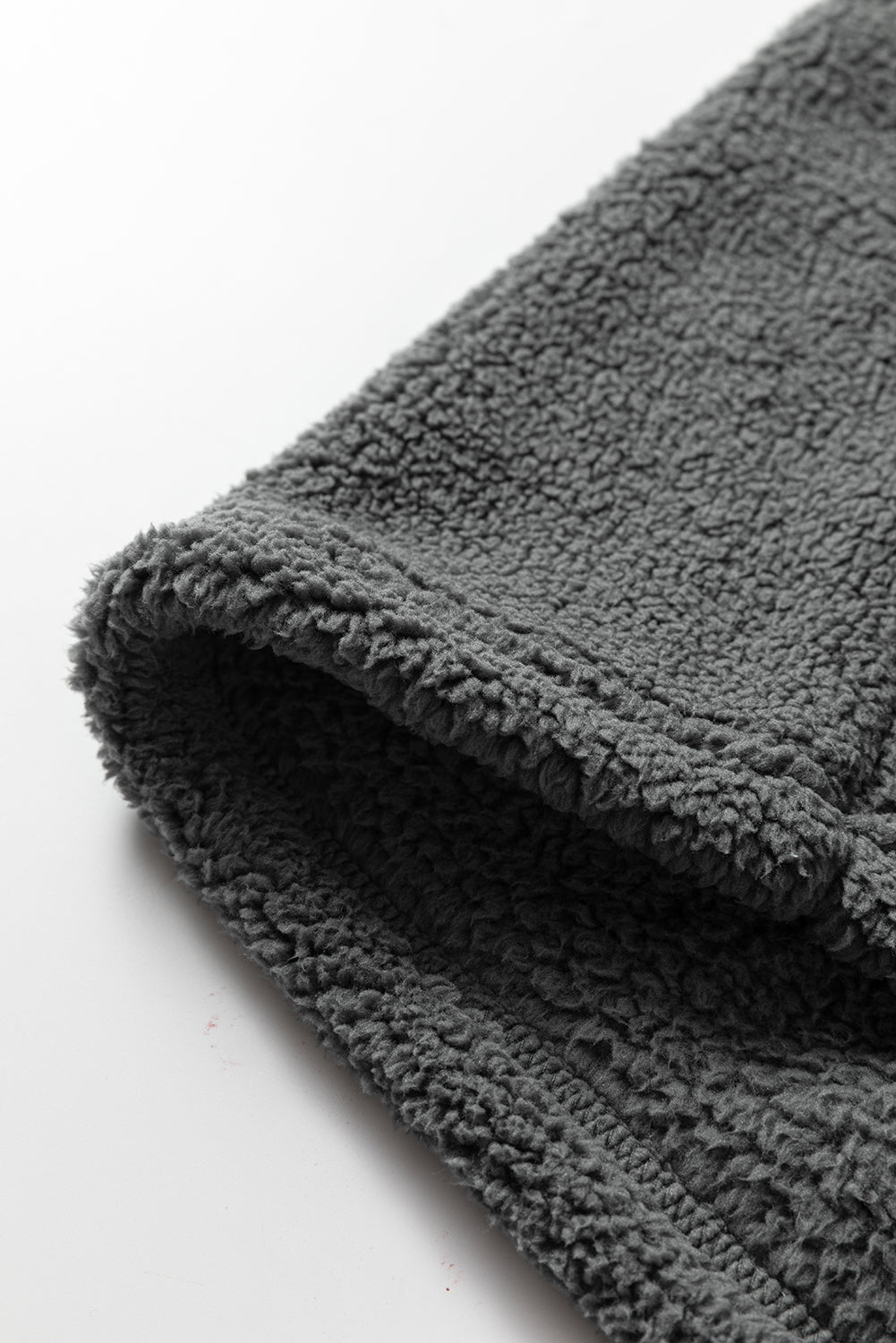 Medium Grey Fuzzy Drawstring Hoodie Lounge Pants 2pcs Set