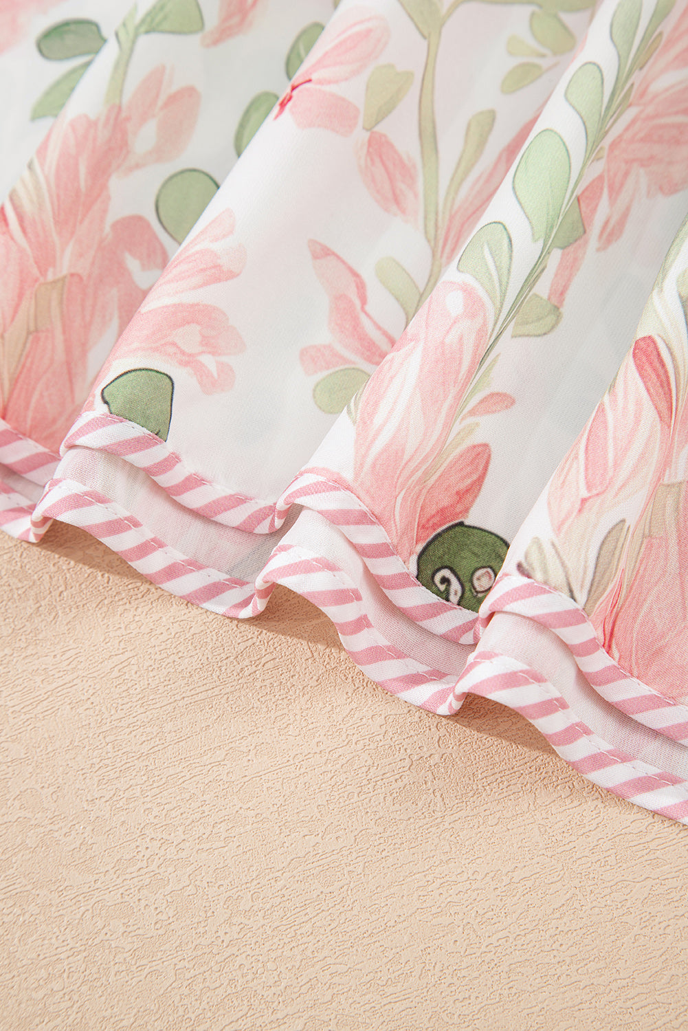 Pink Floral Print Striped Contrast Tiered Ruffled Sleeve V Neck Blouse