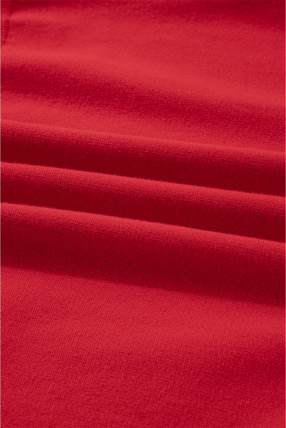 Racing Red Pearl Embellished Double Ruffle Short Sleeve Sweater