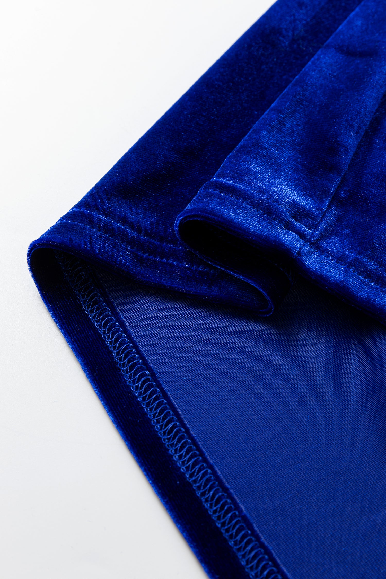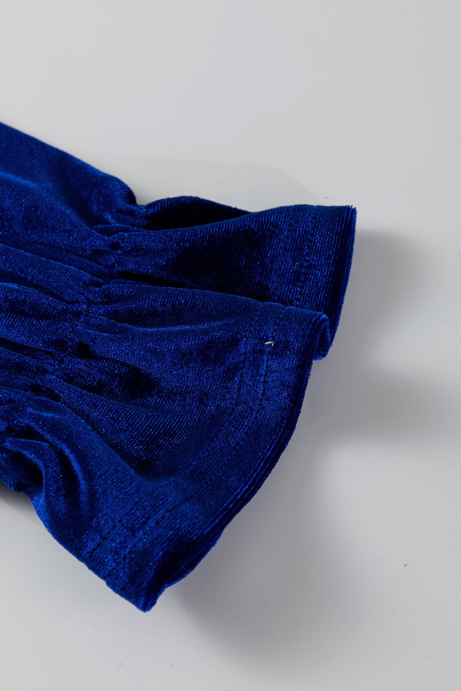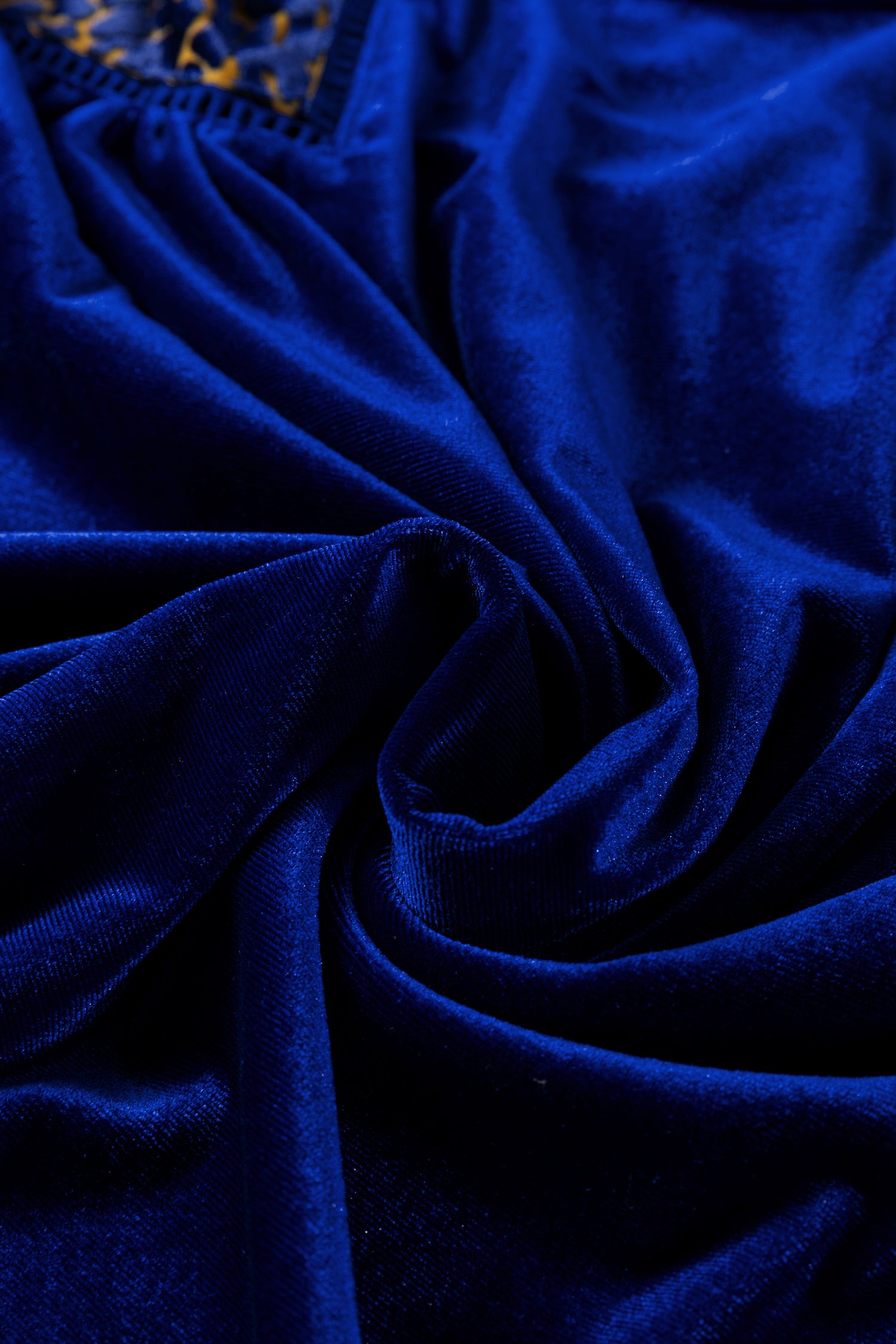 Sky Blue Leopard Patchwork Shoulder Flounce Sleeve Velvet Blouse