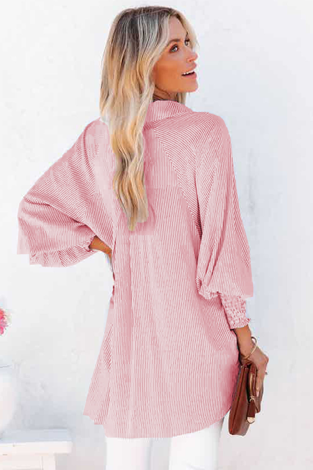 Sky Blue Smocked Cuffed Striped Boyfriend Shirt with Pocket