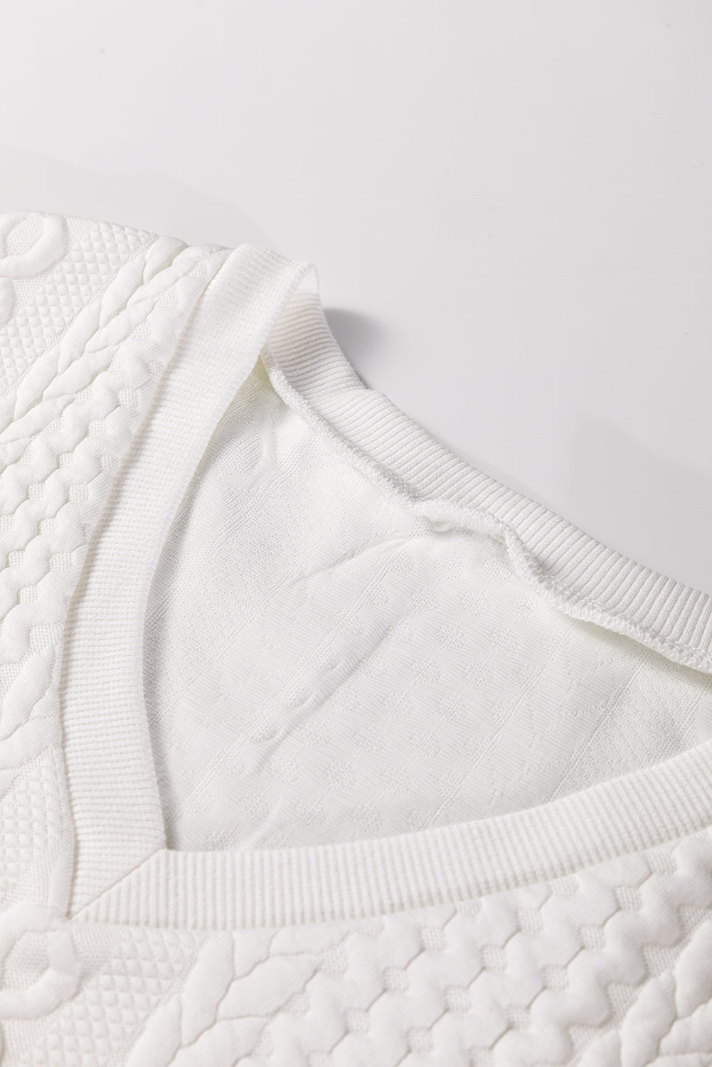 White Solid Color Textured V Neck Drop Shoulder Knit Top