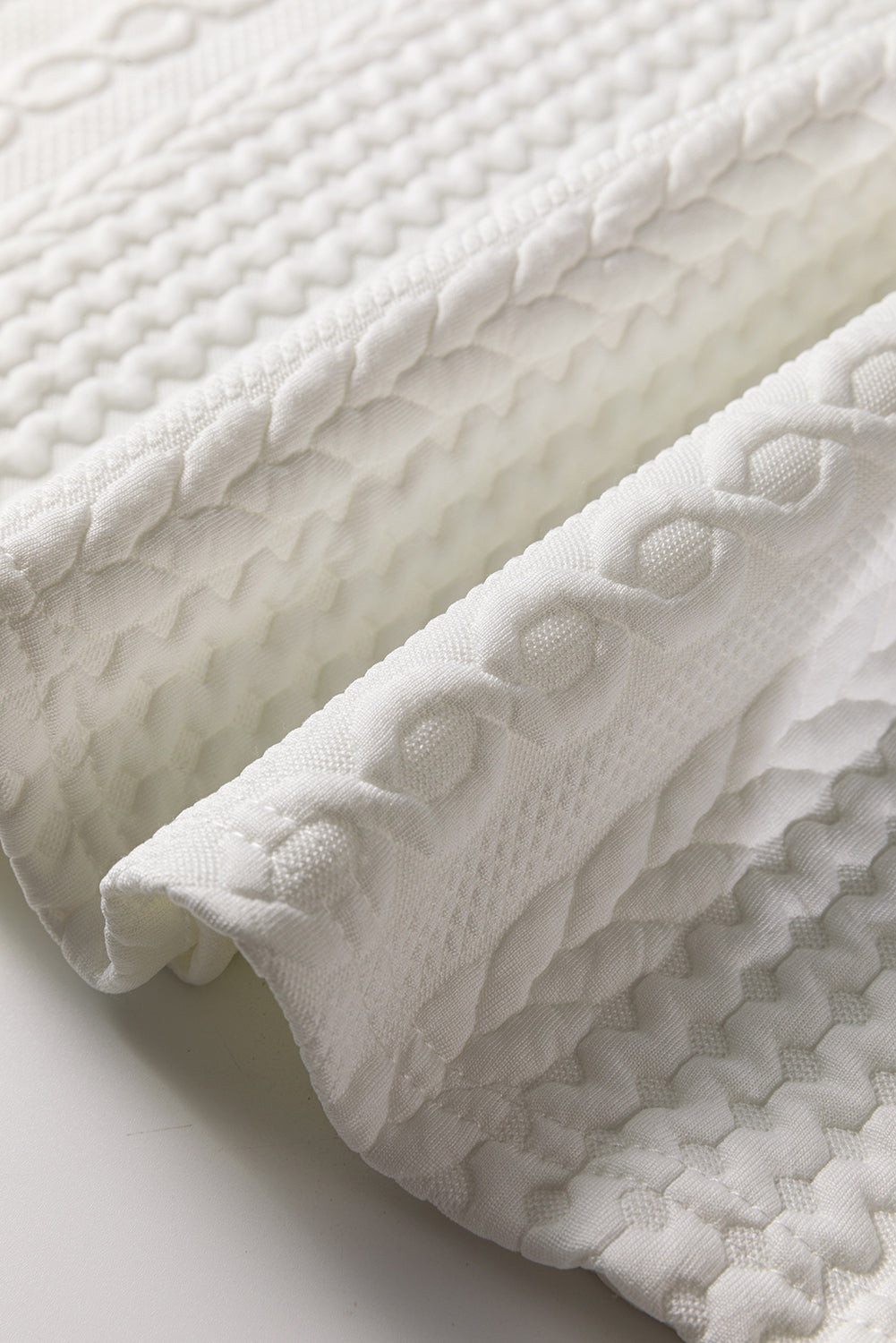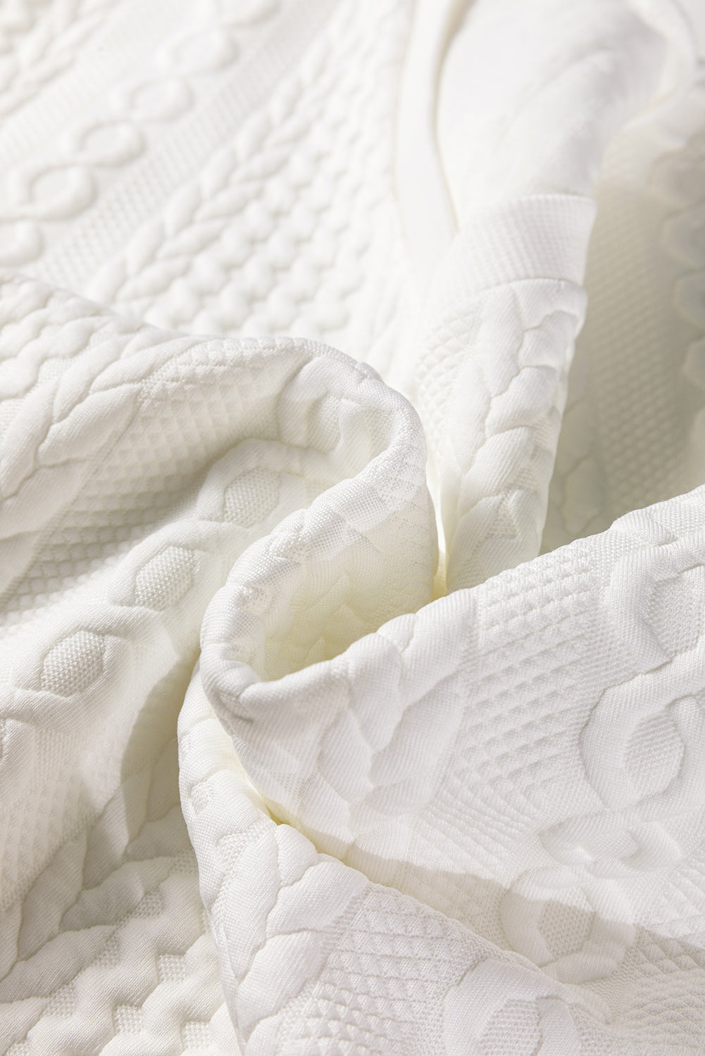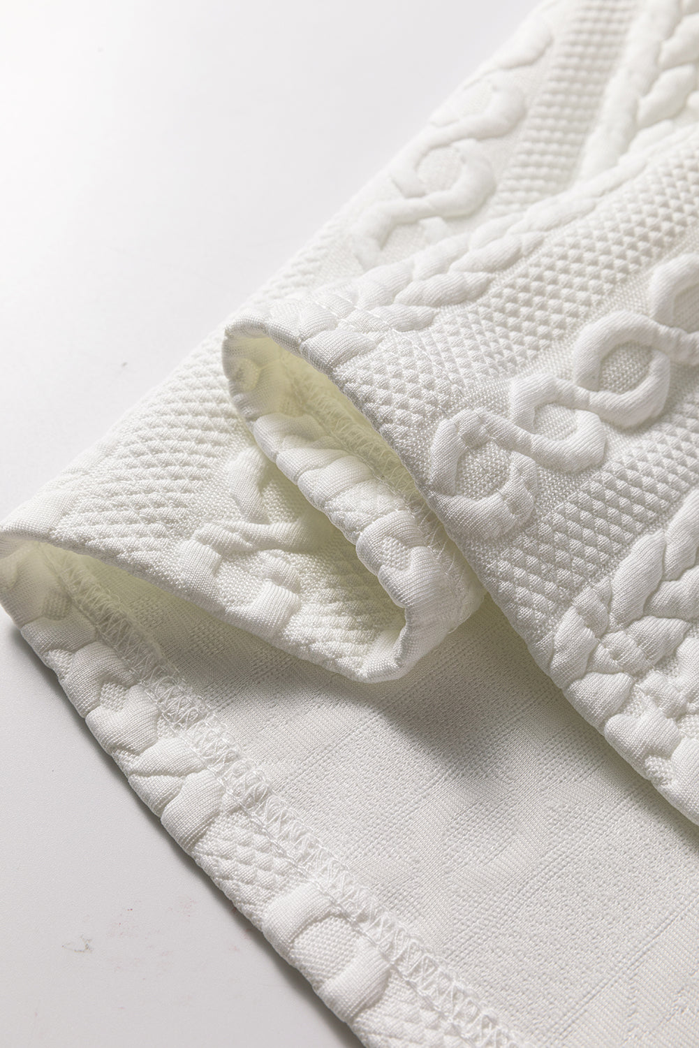 Textured knit fabric creates subtle visual interest and unique touch.