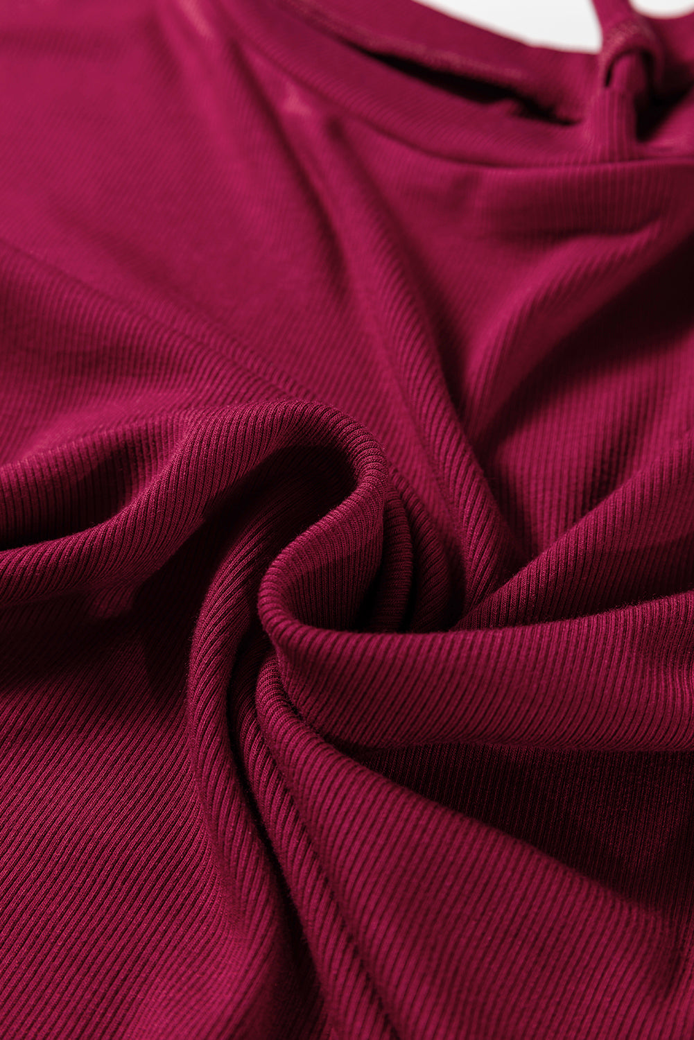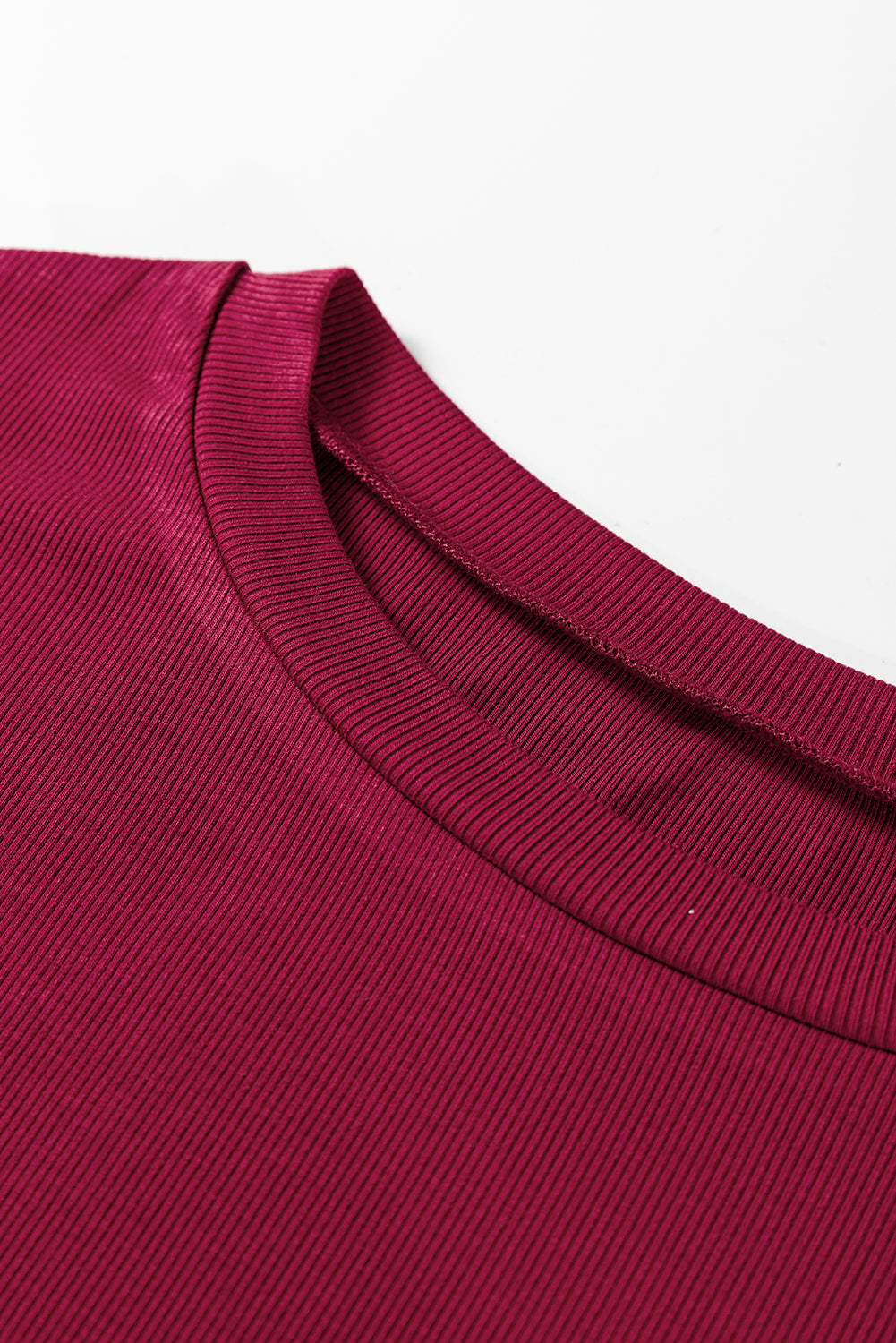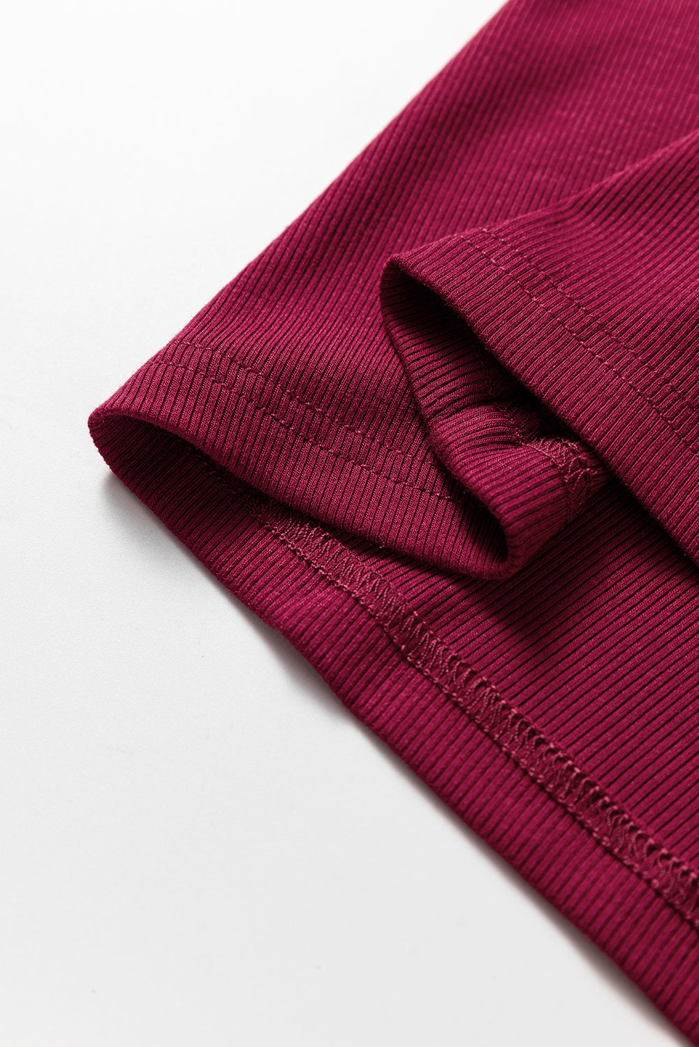 The ruffled cuffs adds feminine detail to this ribbed top.
